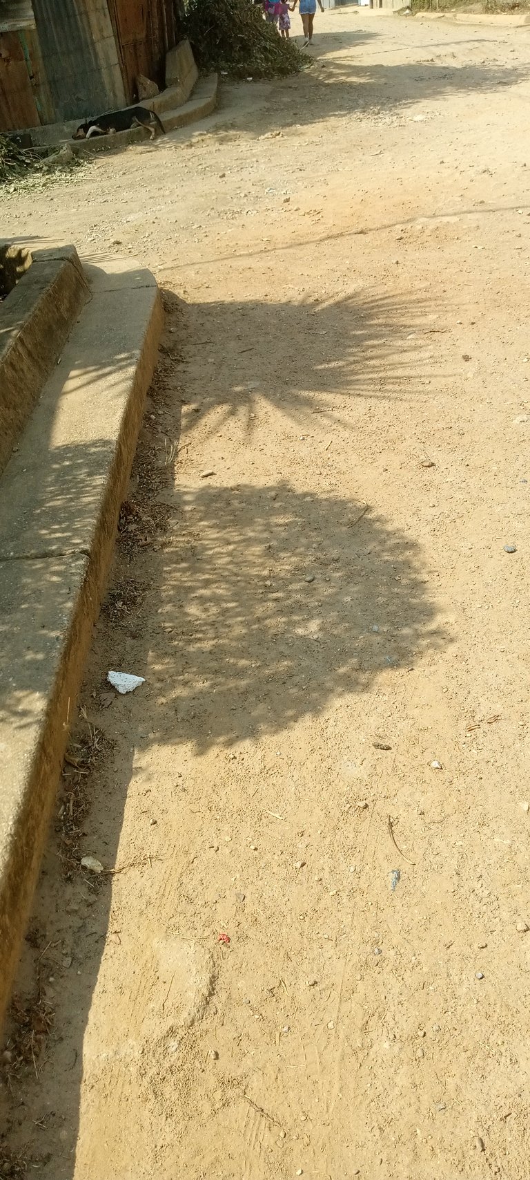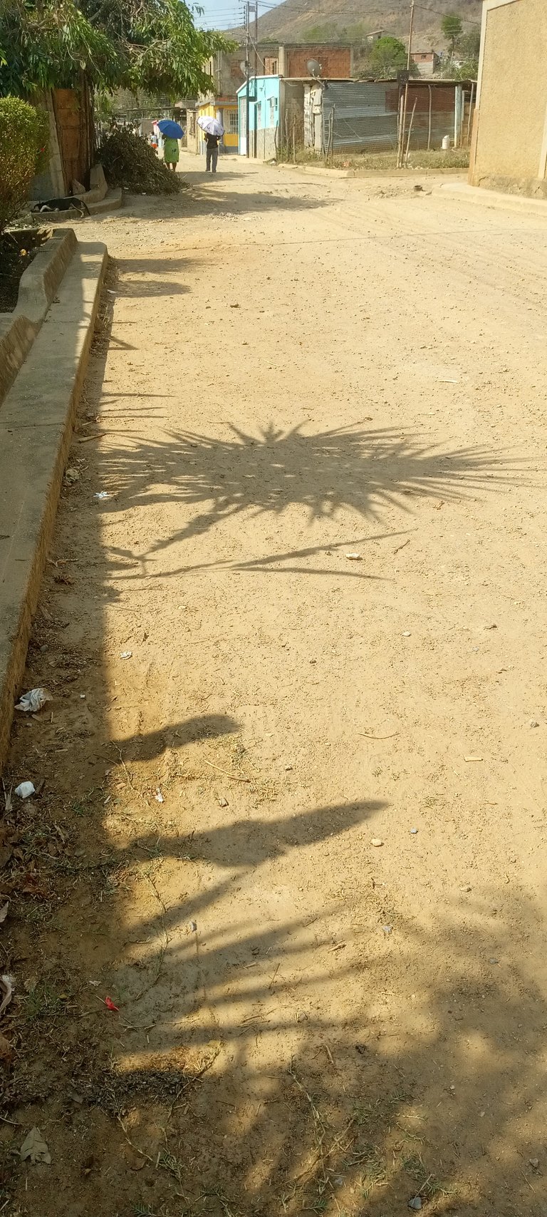 >From a visual standpoint—in my opinion—the contrast of the shadows on the dust looks better than on the cement, since the yellowish tone of the ground in this case provides a more pleasing chromatic backdrop.