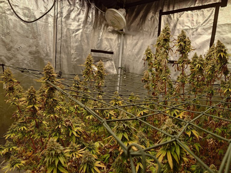 A closer look the bottom row. Lots of buds curing now.