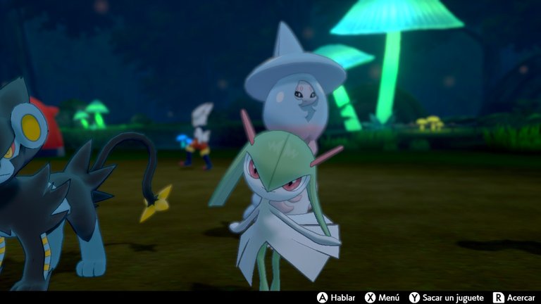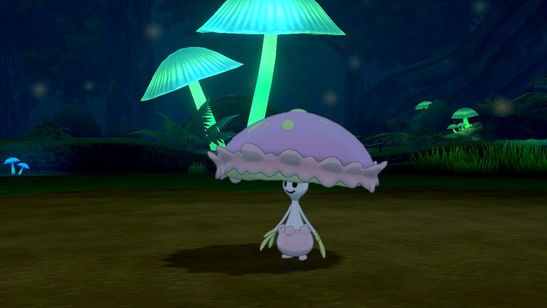 Hello friends and community, I hope you are having a lovely day. this will be my entry for Gaming Photography Weekly Contest - Theme: Night Photography, these will be photographs taken during my gameplay of Pokemon Sword specifically in the Glimwood Tangle forest. This is a unique nighttime setting, famous for its bioluminescent mushrooms that light up the darkness when touched, creating a magical and mysterious atmosphere. Without a doubt it is one of the most memorable places in the Galar region and the perfect spot to photograph unique pokemon in a nocturnal environment. I hope you enjoy these photos of different pokemon in their natural habitat.