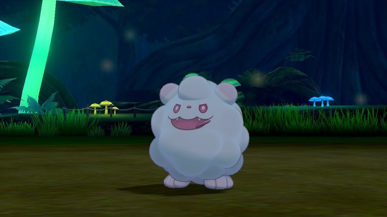 Right after that Swirlix appeared right in front, this small and huggable fairy, it is the cotton candy pokemon, it has very good abilities such as Sweet Scent and Sweet Veil. This is a pokemon whose diet is based exclusively on sweets, which makes its body mostly composed of sugar giving it that fluffy appearance. It is very cheerful and playful, literal and emotional sweetness. It is somewhat rare to find it in the darkness of the forest since it is not its natural habitat.