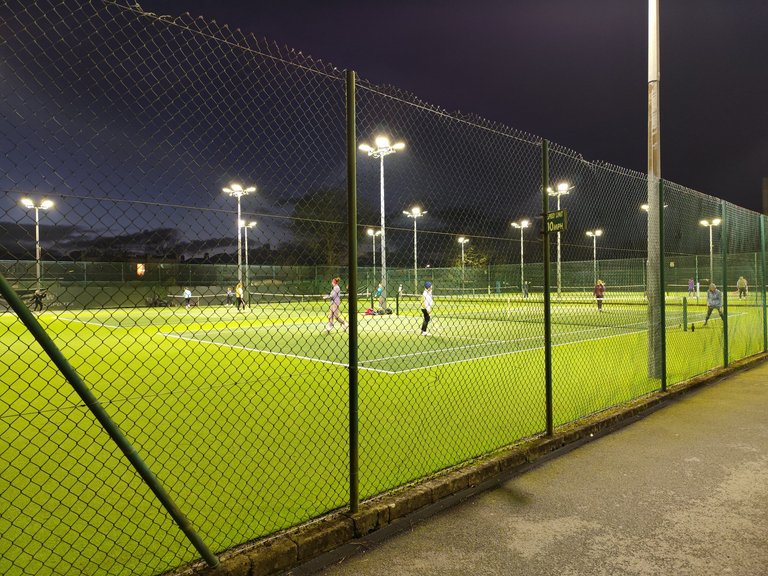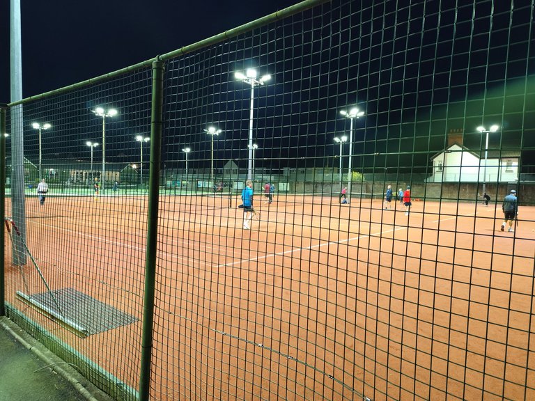 Вечір, 19:00, прохолодно, а на тенісних кортах повно гравців, їх ні пізній час ні вечірня прохолода не зупиняє. Що щераз доводить - якщо хочеш активний спосіб життя, то тебе ніщо не має зупинити. Просто треба зробити для себе такий вибір і все!