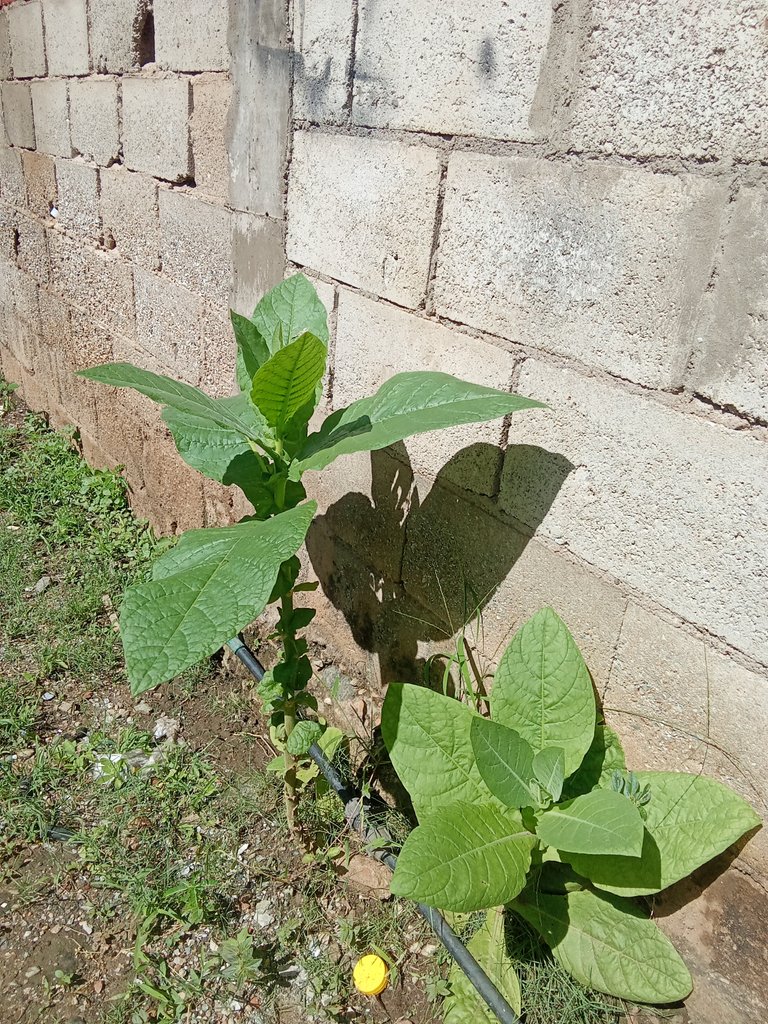 Upon waking and checking if the water was arriving because we have very little left, I saw how the tobacco plant we have had begun to grow its leaves again. Also, as the sun was shining brightly, it allowed me to see not only the shadow of the leaves but also of the plant in general, which could be observed very well on the wall that divides our house from that of the neighbor.